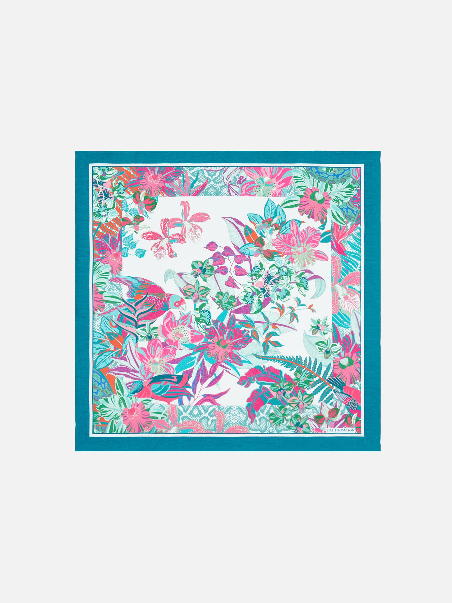 The Parrot Garden Napkin adds a bold, decorative element to your dining table. The print showcases parrots nestled within an exotic garden, surrounded by vibrant foliage and dynamic color.