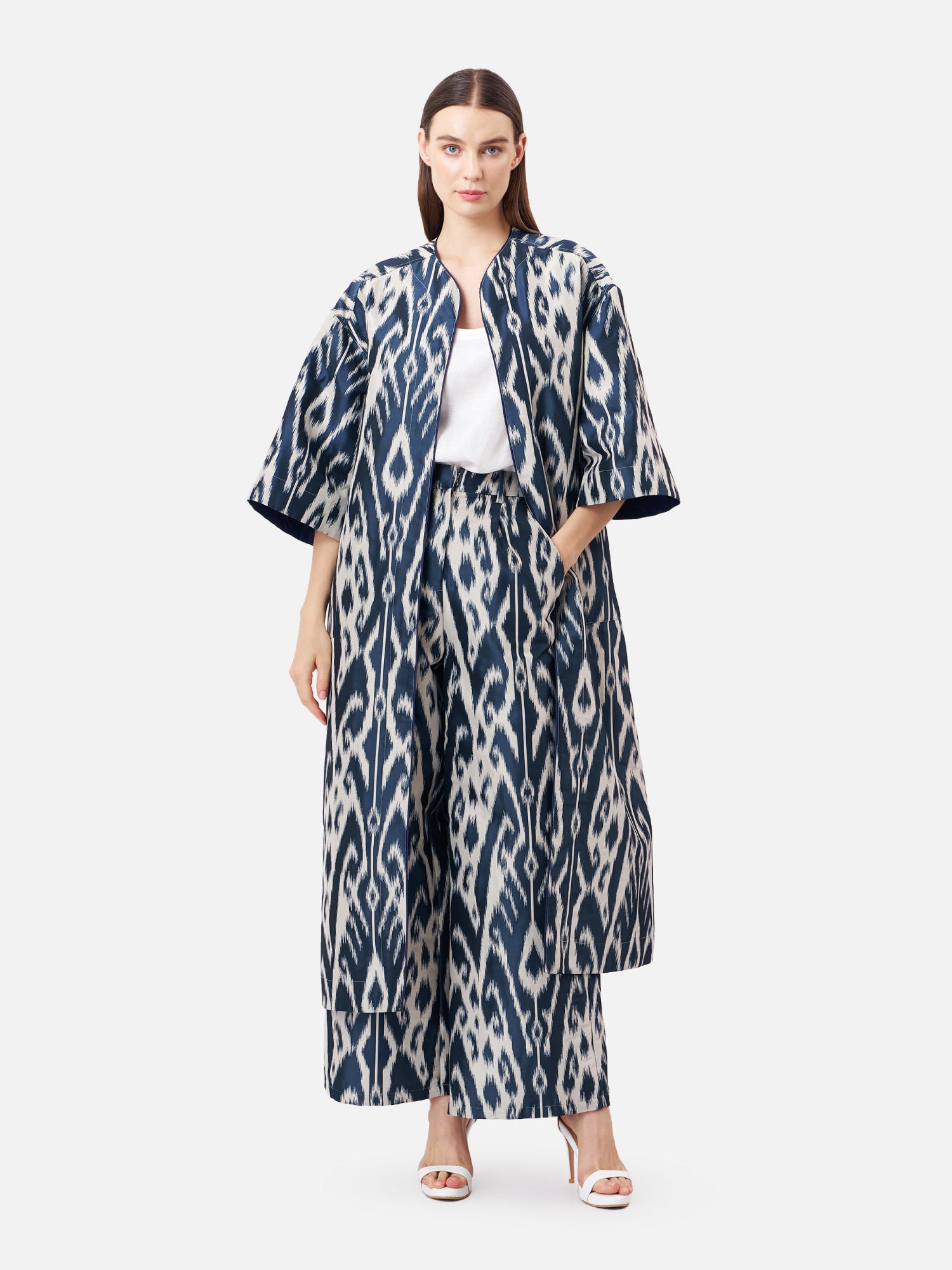 Named after one of the oldest cities along the Silk Road, the Buxara print features a classic ikat pattern that reflects centuries of textile exchange and craftsmanship. Woven with depth and texture, the design brings cultural heritage into a contemporary expression, balancing tradition with modern sophistication.