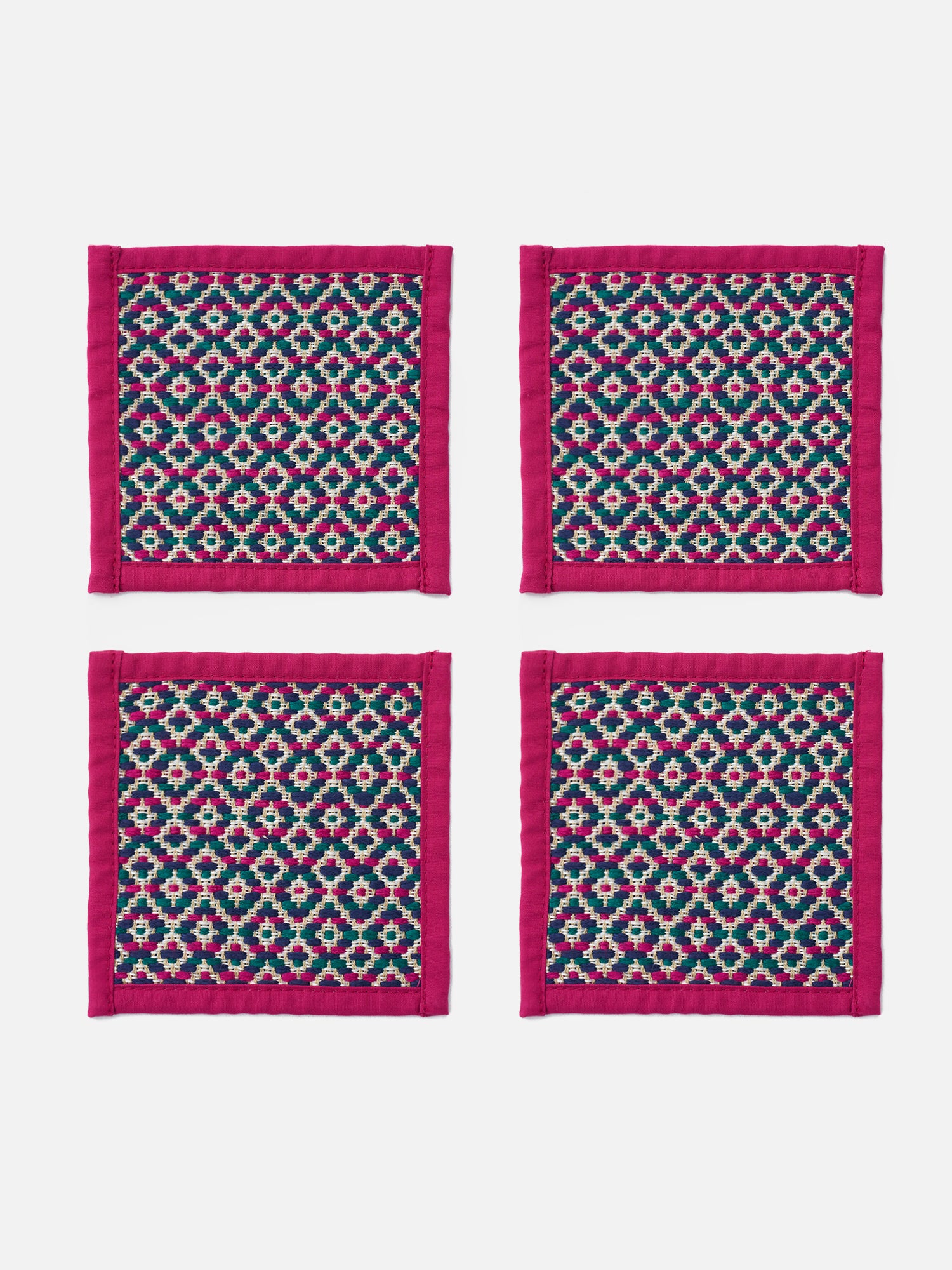 The Pailin Coasters are designed to protect surfaces while elevating your table presentation. Crafted in jacquard, each piece features a delicate woven diamond pattern that adds a subtle decorative touch.