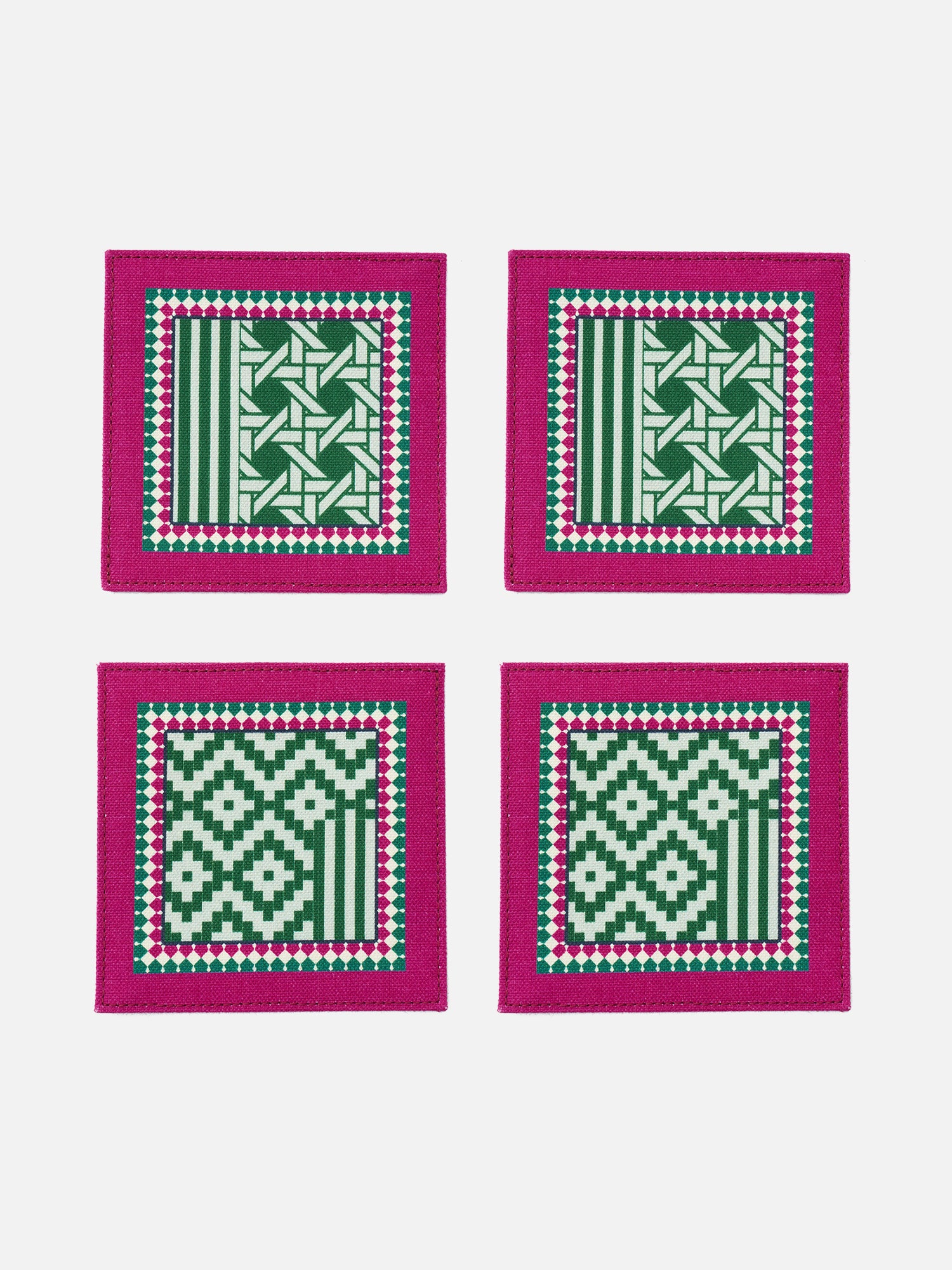 The Weaving Coasters bring cultural artistry to everyday use. Inspired by traditional Thai rice baskets, the design features intricate woven patterns and a lively color palette.