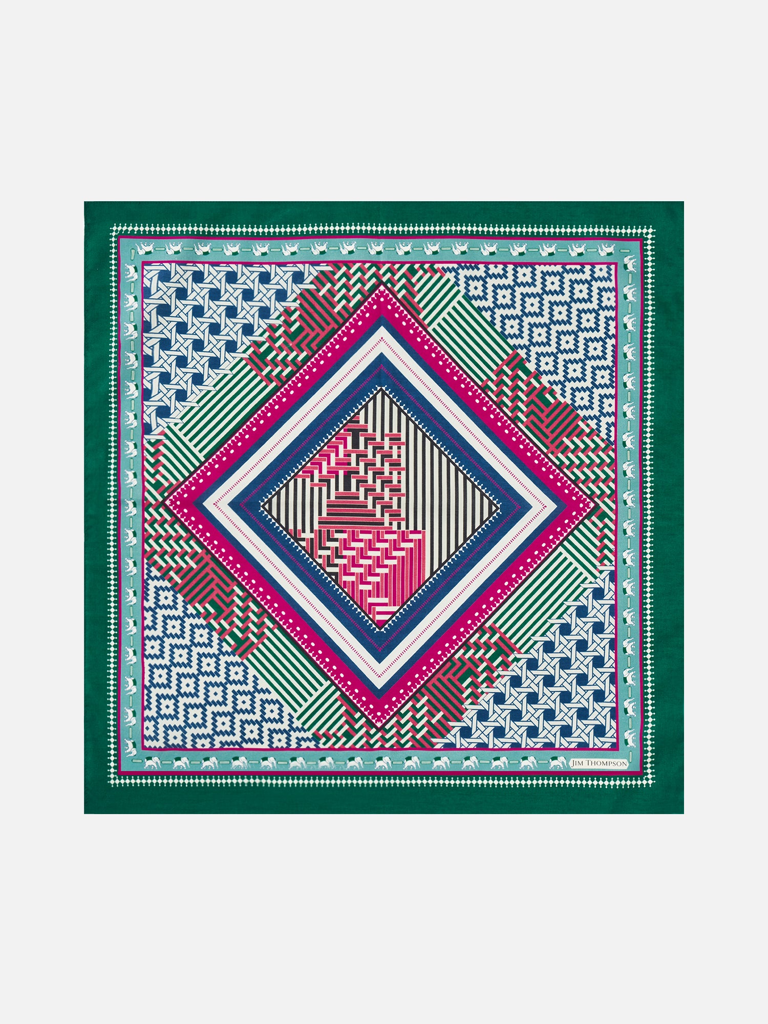 The Weaving Napkin showcases a lively interpretation of traditional Thai craftsmanship. Inspired by rice baskets woven from bamboo and natural materials, the print highlights intricate patterns and vibrant color combinations.